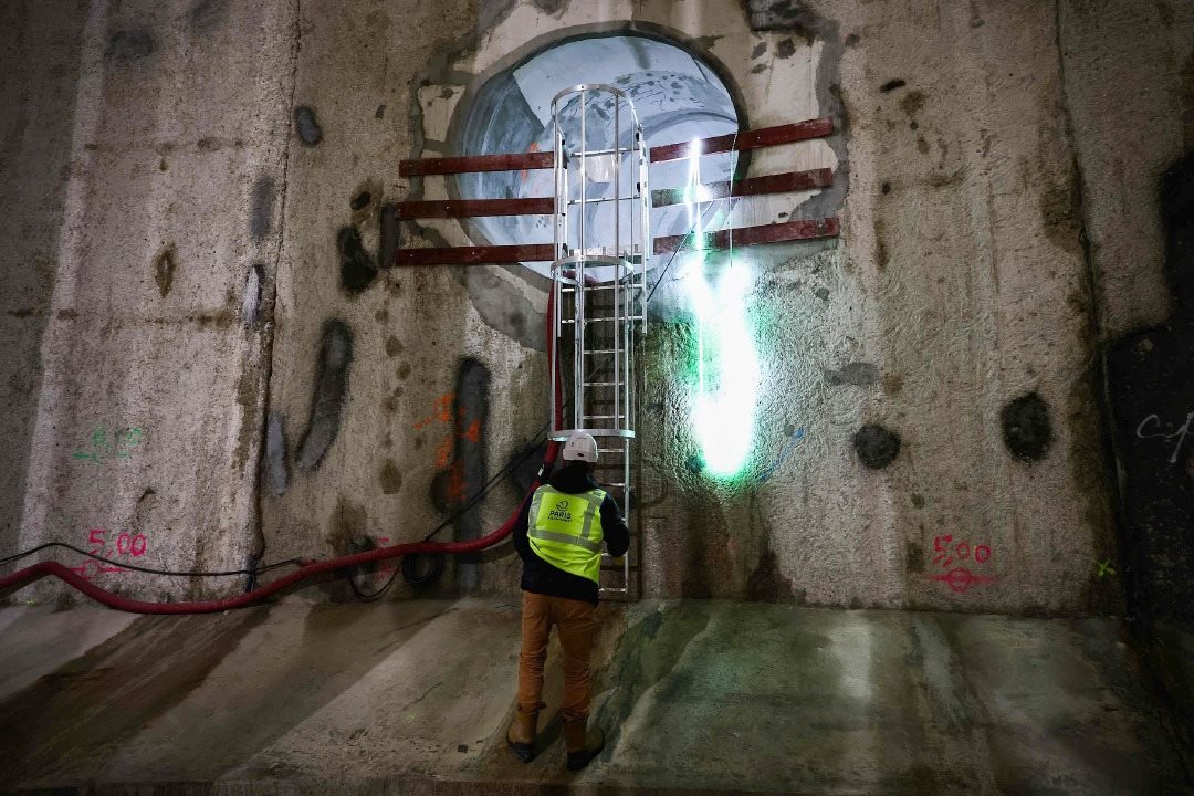 當(dāng)?shù)貢r間2024年3月13日,法國巴黎,建造中的巨型地下雨水蓄水池,用于暴雨來襲時儲存雨水。