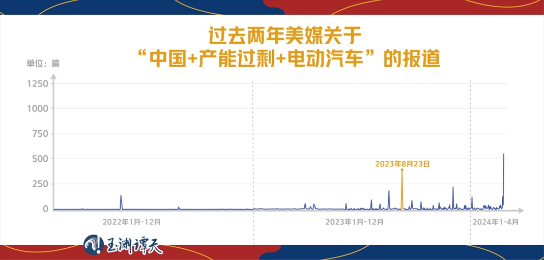 而2023年至今,美媒對所謂中國“產(chǎn)能過剩論”的報道轉(zhuǎn)移到了中國的“新能源產(chǎn)品”上,其中,新能源汽車尤為突出。