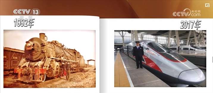 這張稍顯模糊的老照片是1992年,韓軍甲剛參加工作時拍下的。他身邊的蒸汽機(jī)車當(dāng)時的運(yùn)行時速一般只能開到50公里左右,這個風(fēng)華正茂的年輕人從未設(shè)想過,20多年后的2017年,他能駕駛時速350公里的復(fù)興號列車。