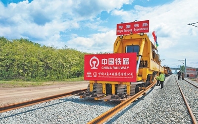 近日,在塞爾維亞和匈牙利邊境地區(qū)的塞爾維亞一側(cè),匈塞鐵路項目施工人員利用鋪軌車等中國設(shè)備進(jìn)行鋪軌作業(yè)。