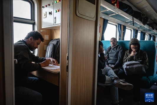 2023年9月9日,人們坐在亞吉鐵路列車的車廂內。新華社記者 王冠森 攝
