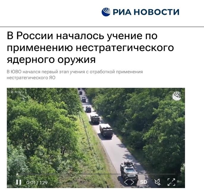 中新網5月22日電 綜合俄媒報道,俄國防部當?shù)貢r間21日表示,俄羅斯已開始第一階段的非戰(zhàn)略核力量演習,就準備使用非戰(zhàn)略核武器進行實際演練。