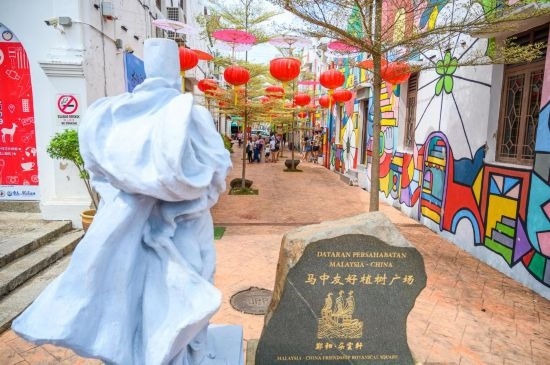 這是2019年12月20日在馬來西亞馬六甲拍攝的鄭和·朵云軒(馬六甲)藝術(shù)館外的馬中友好植樹廣場。600多年前,鄭和五次駐節(jié)馬六甲,由他帶到這片土地上的中華文化如今已深深融入當?shù)囟嘣幕小P氯A社記者朱煒攝