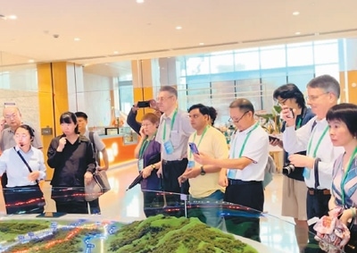 本次論壇還組織與會嘉賓前往浙江省安吉縣余村實地參觀考察。圖為中外嘉賓在余村了解當?shù)貜摹翱可匠陨健钡健案簧金B(yǎng)山”的綠色發(fā)展之路。本報記者 孫亞慧攝