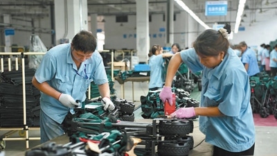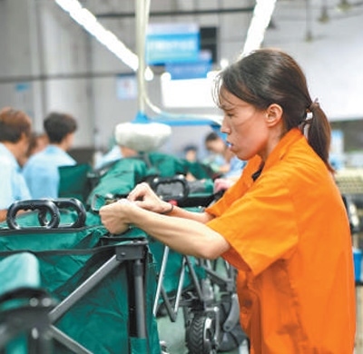 河南泰普森公司生產(chǎn)車(chē)間的工作人員正在組裝戶(hù)外小拉車(chē)。這批訂單將于10月發(fā)往美洲市場(chǎng)。本報(bào)記者 張文豪攝