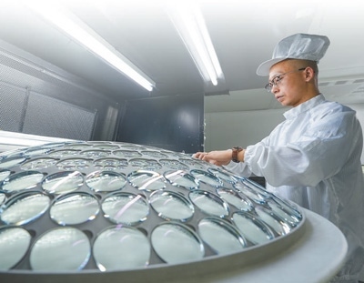 工作人員正在檢查鏡片質(zhì)量。江蘇丹陽(yáng)市委宣傳部供圖