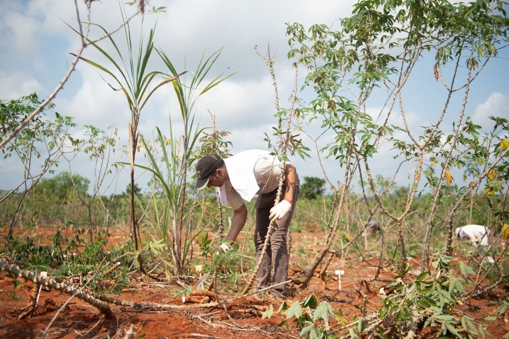 2020年3月24日,在位于海南省的中國(guó)熱帶農(nóng)業(yè)科學(xué)院的一處基地,來自埃及的副教授哈馬達(dá)·穆罕默德·哈?!ぐ⒉范爬瓍⒓又袊?guó)熱科院熱帶生物技術(shù)研究所木薯育種團(tuán)隊(duì)開展的木薯選育新技術(shù)培訓(xùn)。