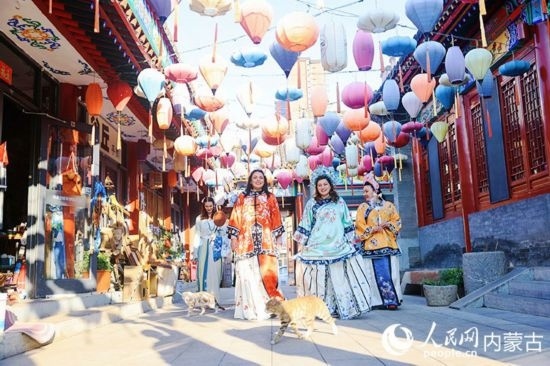 大盛魁博物館整體建筑風(fēng)格為清末民國至上世紀(jì)40年代歸化城(今呼和浩特市)街區(qū)風(fēng)貌。外媒記者“小姐姐”們現(xiàn)場“換裝”,體驗各式中華傳統(tǒng)服飾。來自巴勒斯坦國家電視臺的主持人拉尼婭·哈姆達拉,換了一身鮮艷的橘色服飾,行走園中,宛若“穿越”時光。
