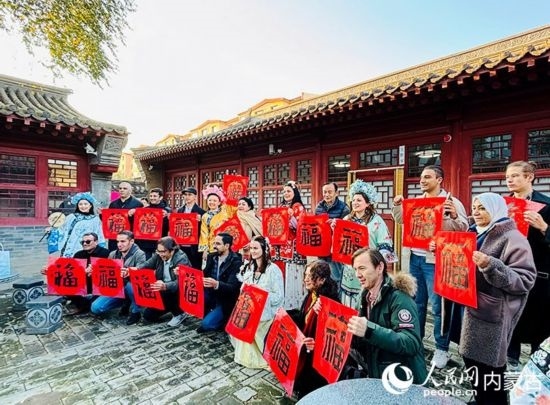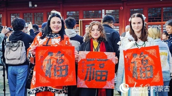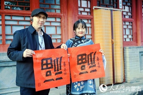 人民網(wǎng)呼和浩特10月23日電 (張聿修、孟佳澍、張雪冬、實(shí)習(xí)生朱昱晗)?!暗埂绷耍扛!暗健绷?!擺弄著手中的福字,了解到關(guān)于福字的寓意,塔吉克斯坦記者烏斯蒙·阿卜杜恰洪洛夫露出驚訝的表情,感嘆中國(guó)語(yǔ)言蘊(yùn)含的智慧。