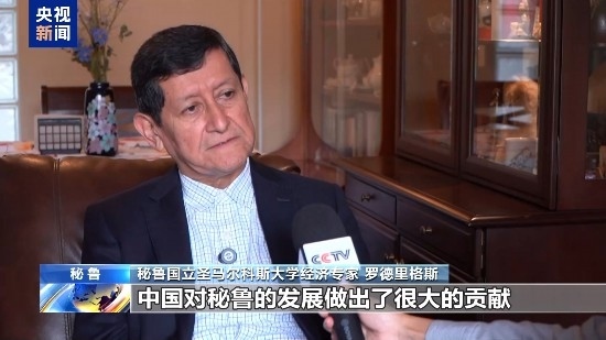 秘魯國立圣馬爾科斯大學(xué)經(jīng)濟專家 羅德里格斯:中國對秘魯?shù)陌l(fā)展做出了很大的貢獻。首先中國從我們這里購買產(chǎn)品,其次中國向我們提供了很多產(chǎn)品,有價格實惠的手機、汽車,提高了許多人的生活水平。
