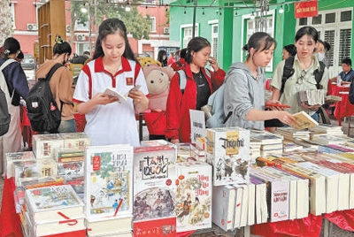 4月9日,越南河內大學孔子學院學生在翻閱越南語版的中國傳統(tǒng)經(jīng)典名著。