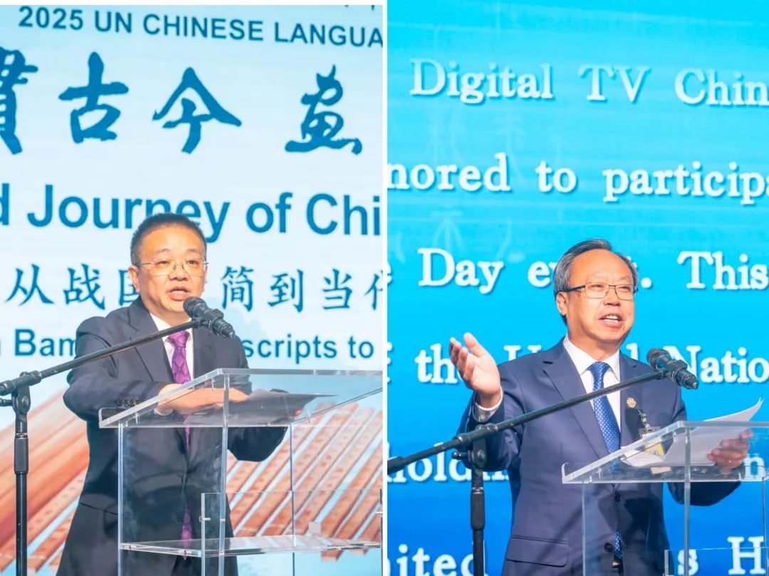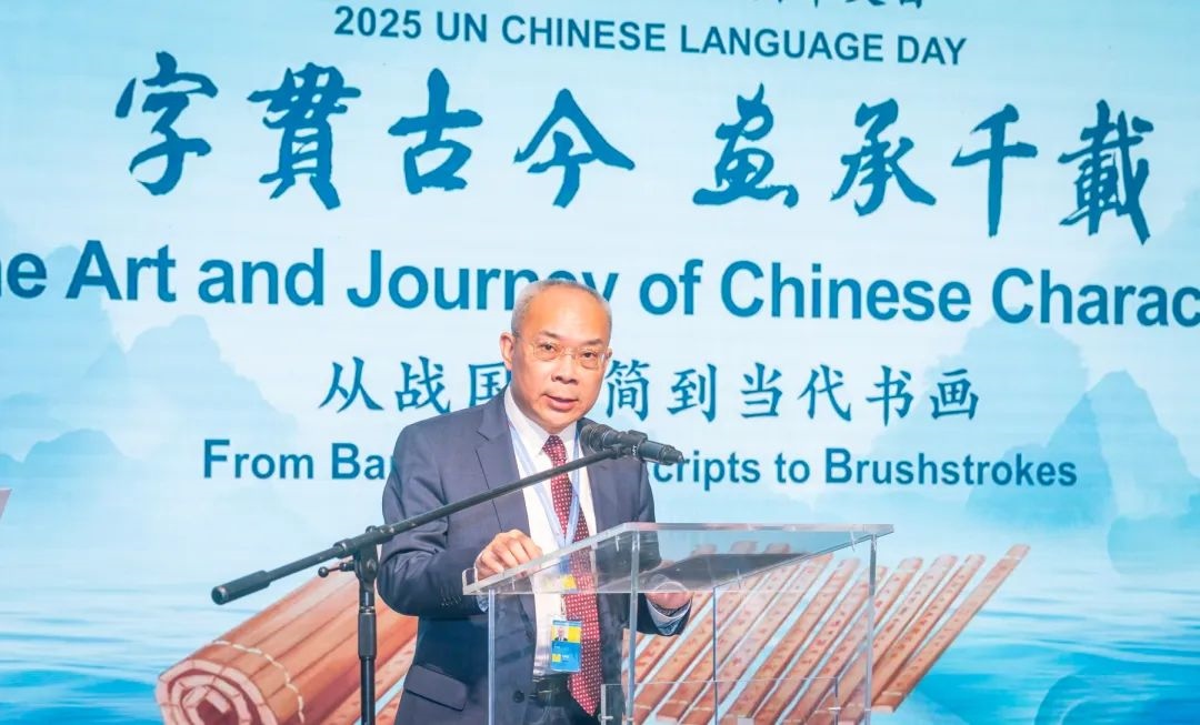 此次中文日活動以“字貫古今 畫承千載——從戰(zhàn)國竹簡到當代書畫”為主題,由中國常駐維也納代表團、聯合國維也納辦事處主辦,中央數字電視書畫頻道、清華大學、安徽大學、吉林大學協(xié)辦,共同為維也納聯合國總部獻上了一場中國文化盛宴。清華大學副校長彭剛、中央數字電視書畫頻道董事局主席王平在開幕式致辭,探討了文字、文化、文明三者之間的緊密關系和文明交流互鑒的重要意義。