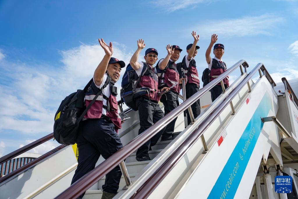 4月19日,12名從北京出發(fā)的隊員從北京首都機場離京。新華社記者 張玉薇 攝