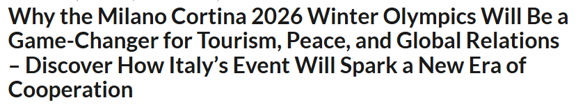 文章認(rèn)為,2026年米蘭-科爾蒂納冬季奧運會舉辦的意義遠(yuǎn)不止于爭奪金牌,還將有力推動全球旅游業(yè)復(fù)蘇、促進和平理念傳播,并通過體育運動將不同文化緊密連接。