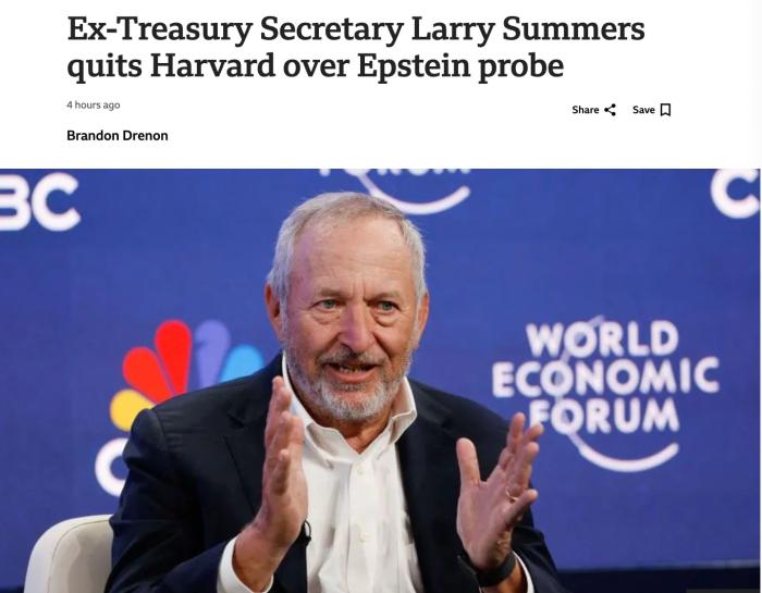 據(jù)報(bào)道,哈佛大學(xué)在25日的一份聲明中表示,薩默斯的離職“與哈佛大學(xué)正在對(duì)愛潑斯坦案相關(guān)文件進(jìn)行的審查有關(guān)”。