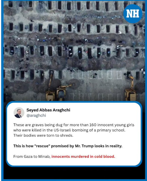 據(jù)報道,阿拉格齊在貼文中表示,“這些墳?zāi)?,是為了埋葬在美以?lián)合轟炸小學(xué)事件中遇難的160多名無辜女孩而挖的。她們的遺體支離破碎?!?/p>