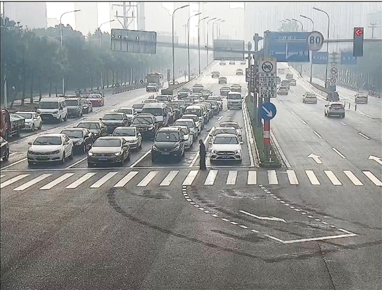 接下來(lái)會(huì)發(fā)生什么呢?通過(guò)視頻監(jiān)控可以看到,東西向的車(chē)輛有一部分開(kāi)始動(dòng)起來(lái),但老人左手邊三個(gè)車(chē)道的車(chē)都紋絲不動(dòng),等著老人安全走過(guò)來(lái)。
