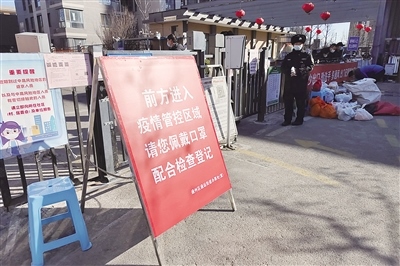 2月23日上午,通州區(qū)武夷花園月季園門(mén)前擺放著“前方管控區(qū)域”的告示牌。 新京報(bào)記者 王子誠(chéng) 攝