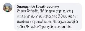 老撾黨中央機(jī)關(guān)報前總編輯、社長端吉·薩瓦本彌(Duangchith Savathbounmy)留言:“認(rèn)同我的祖國對臺灣問題的表態(tài),支持一個中國原則,臺灣是中國不可分割的一部分?!?/p>
