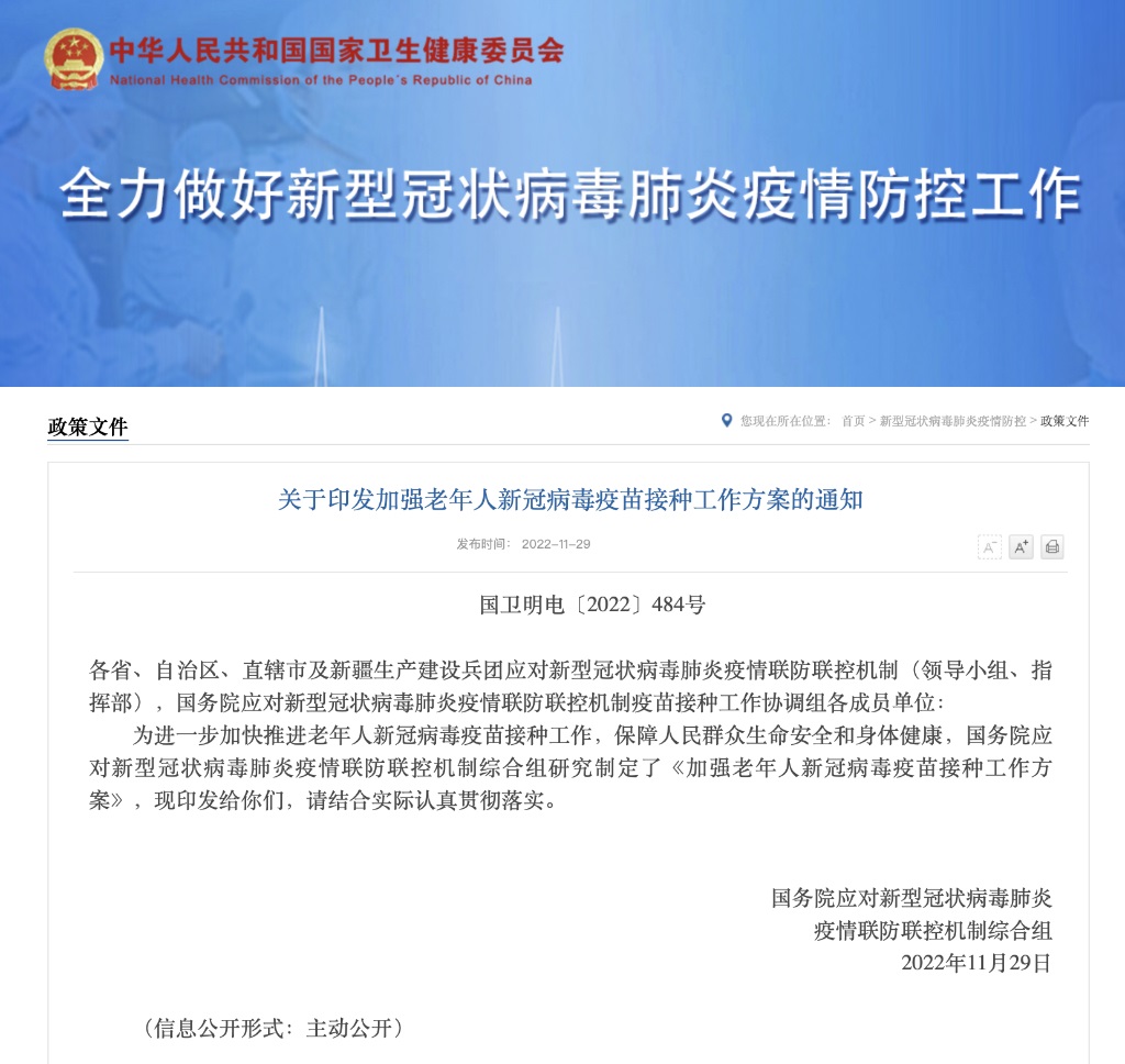 國家疾控局衛(wèi)生免疫司有關負責人表示,下一步,將認真貫徹方案要求,指導各地周密組織部署,優(yōu)化接種服務,做好新冠病毒疫苗加強免疫和老年人的接種工作。呼吁老年朋友們,特別是80歲以上的老年人積極主動接種疫苗,為個人健康護航。