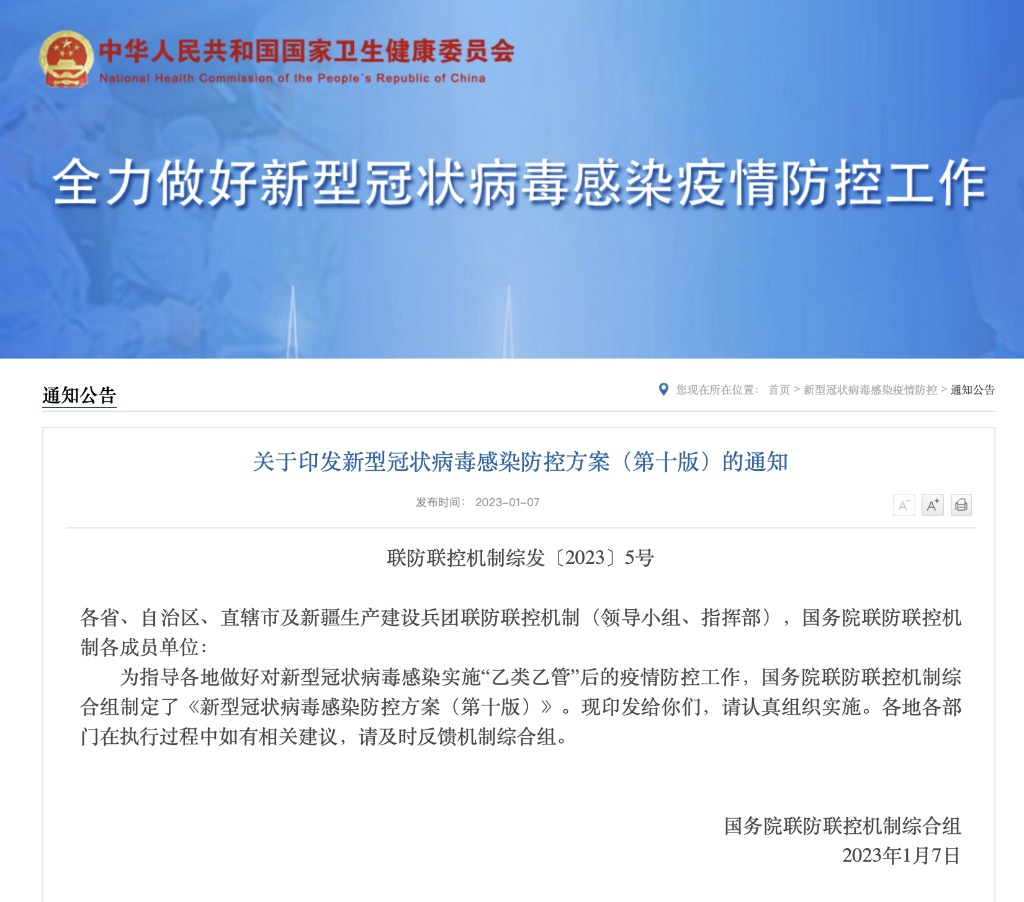 新華社北京1月7日電 國務(wù)院聯(lián)防聯(lián)控機(jī)制綜合組1月7日印發(fā)《新型冠狀病毒感染防控方案(第十版)》。新版防控方案倡導(dǎo)疫苗接種和個(gè)人防護(hù),調(diào)整了傳染源管理方式和檢測策略,優(yōu)化了重點(diǎn)環(huán)節(jié)防控,并明確在疫情流行期間采取緊急防控措施。