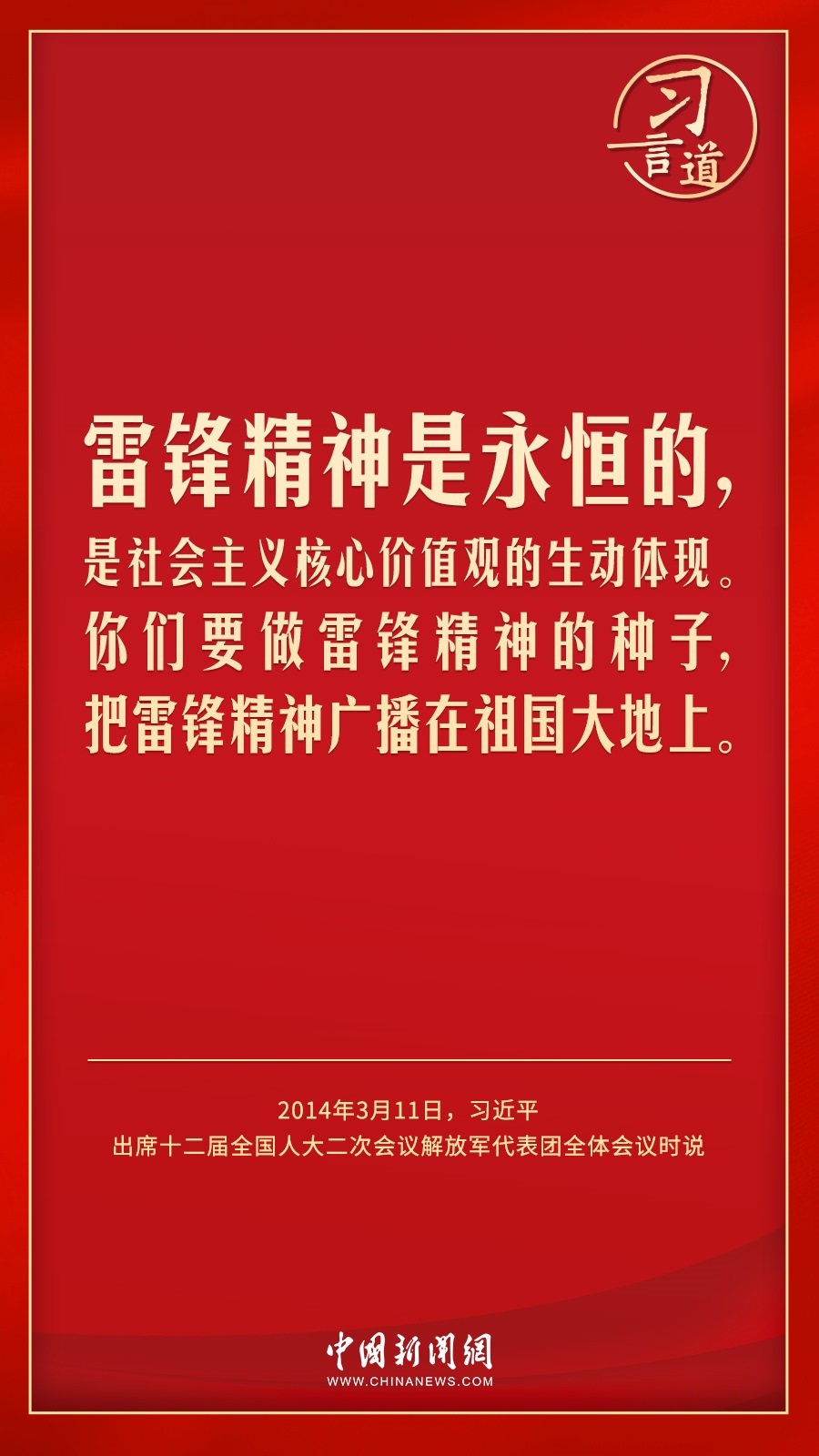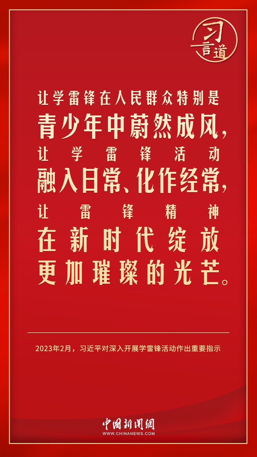 今年是毛澤東等老一輩革命家為雷鋒同志題詞60周年。黨的十八大以來,習(xí)近平總書記就學(xué)習(xí)弘揚雷鋒精神多次作出重要指示,他強調(diào),無論時代如何變遷,雷鋒精神永不過時。