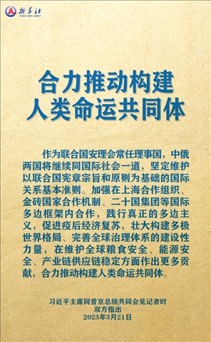 3月20日,習(xí)近平主席在《俄羅斯報(bào)》和俄新社網(wǎng)站上發(fā)表的署名文章中,回顧了構(gòu)建人類命運(yùn)共同體理念的發(fā)展歷程。