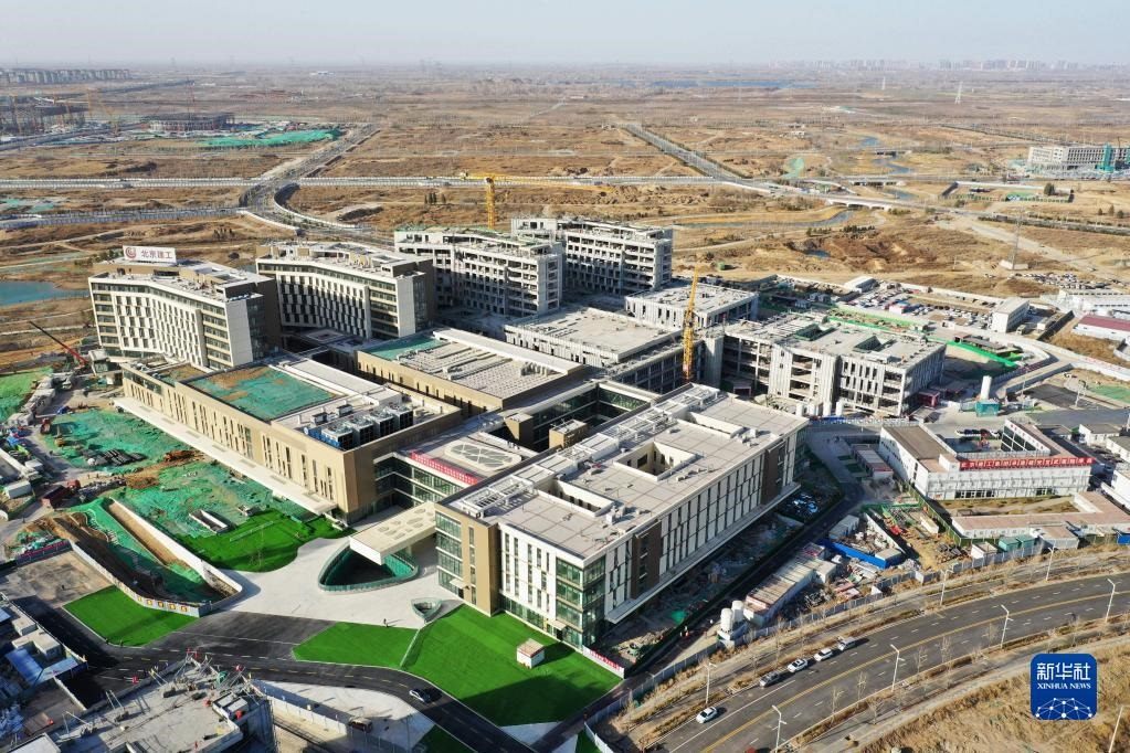 這是位于雄安新區(qū)啟動(dòng)區(qū)的雄安宣武醫(yī)院項(xiàng)目(2023年3月15日攝,無(wú)人機(jī)照片)。新華社記者 朱旭東 攝
