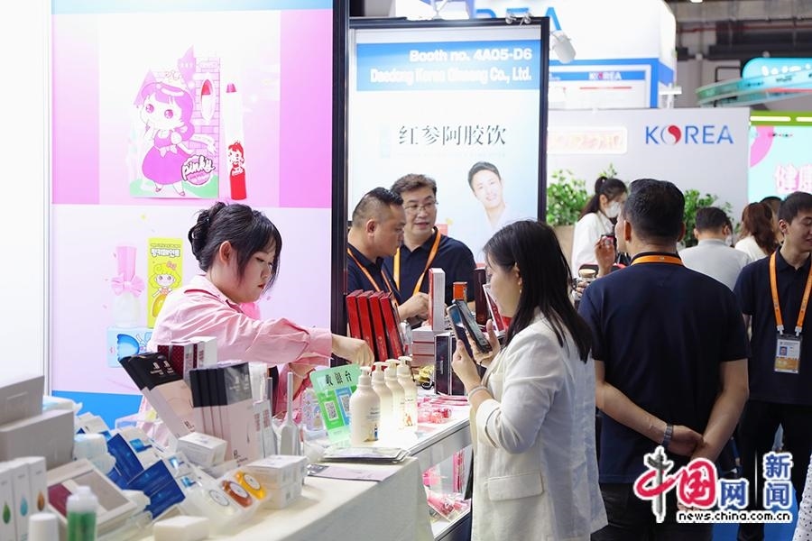 4月11日,工作人員為觀眾介紹韓國護(hù)膚品、化妝品和保健品等。中國網(wǎng)記者 吳亮 攝