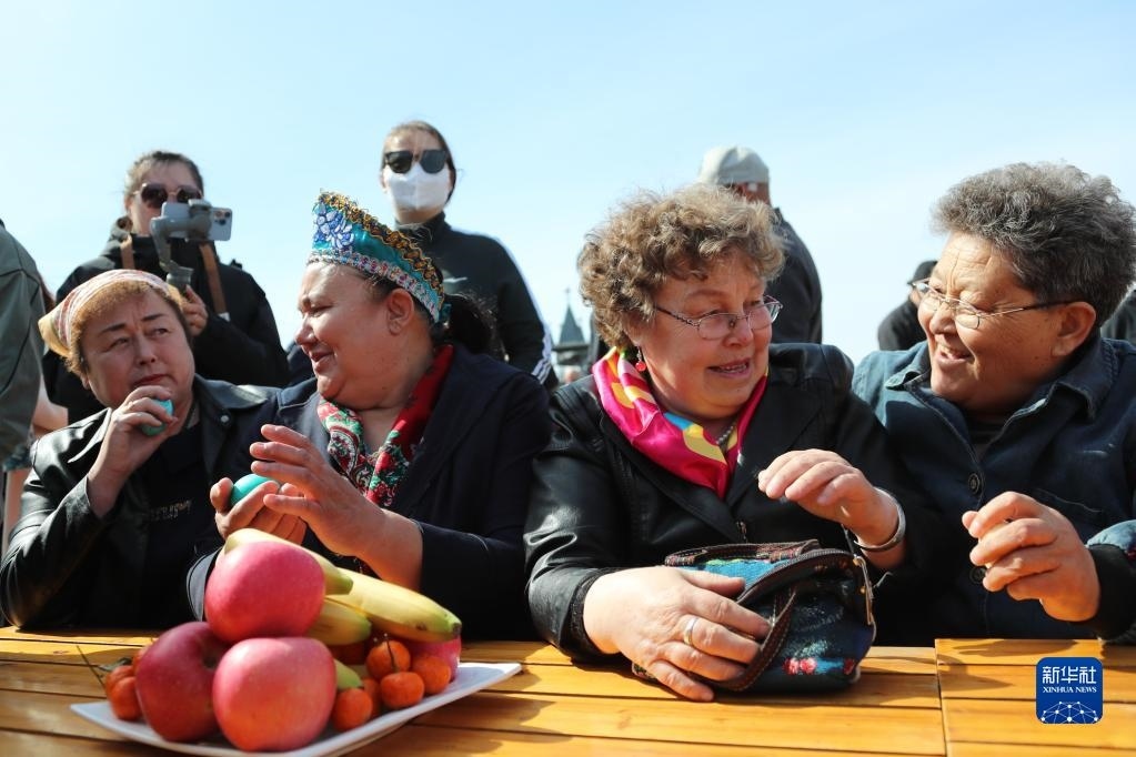4月16日,俄羅斯族群眾參加巴斯克節(jié)傳統(tǒng)美食比賽。