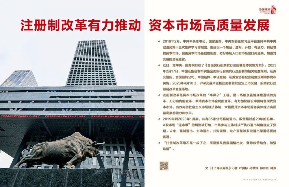 ◆ 注冊制改革是資本市場改革的“牛鼻子”工程,是一場觸及監(jiān)管底層邏輯的變革、刀刃向內(nèi)的變革、牽動資本市場全局的變革,有力加快建設(shè)中國特色現(xiàn)代資本市場,有效完善社會主義市場經(jīng)濟體制,大幅提升資本市場服務(wù)實體經(jīng)濟高質(zhì)量發(fā)展的能力和水平。