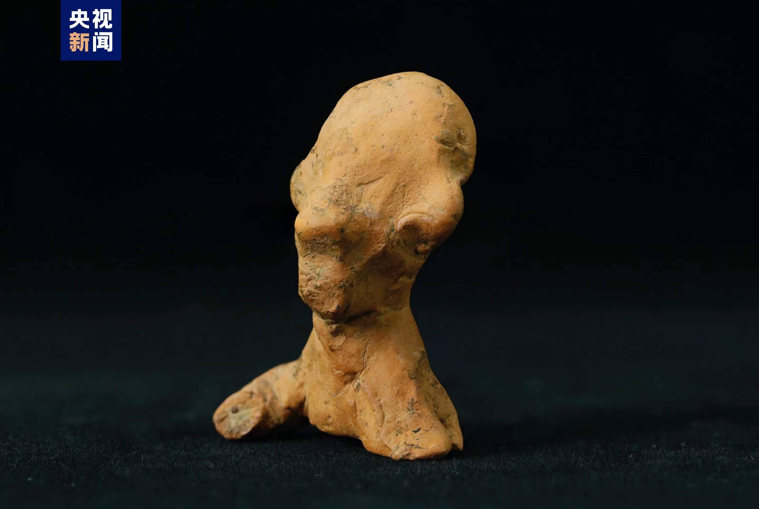 該陶塑人像出土于石家河三房灣遺址地層,距今約4000年。出土?xí)r有殘缺,表面有附著物。文物修復(fù)專家在觀察陶塑上是否有一些遺留痕跡時(shí),發(fā)現(xiàn)了疑似指紋痕跡。