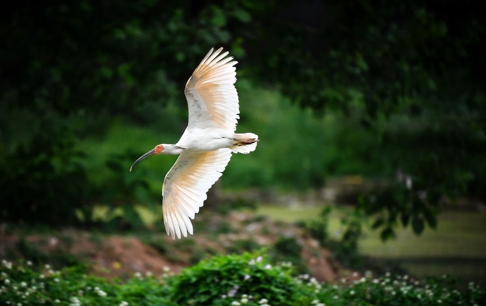 這是陜西省漢中市洋縣朱鹮生態(tài)園內(nèi)的朱鹮(2021年5月13日攝)。