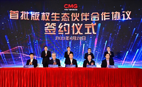4月28日,以“共融共生 共創(chuàng)未來”為主題的中央廣播電視總臺(tái)首屆版權(quán)生態(tài)合作大會(huì)在上海舉行。中宣部副部長、中央廣播電視總臺(tái)臺(tái)長慎海雄,上海市委常委、宣傳部部長趙嘉鳴出席,并與中國版權(quán)協(xié)會(huì)理事長閻曉宏、總臺(tái)編務(wù)會(huì)議成員彭健明共同見證總臺(tái)首批版權(quán)生態(tài)伙伴簽約。