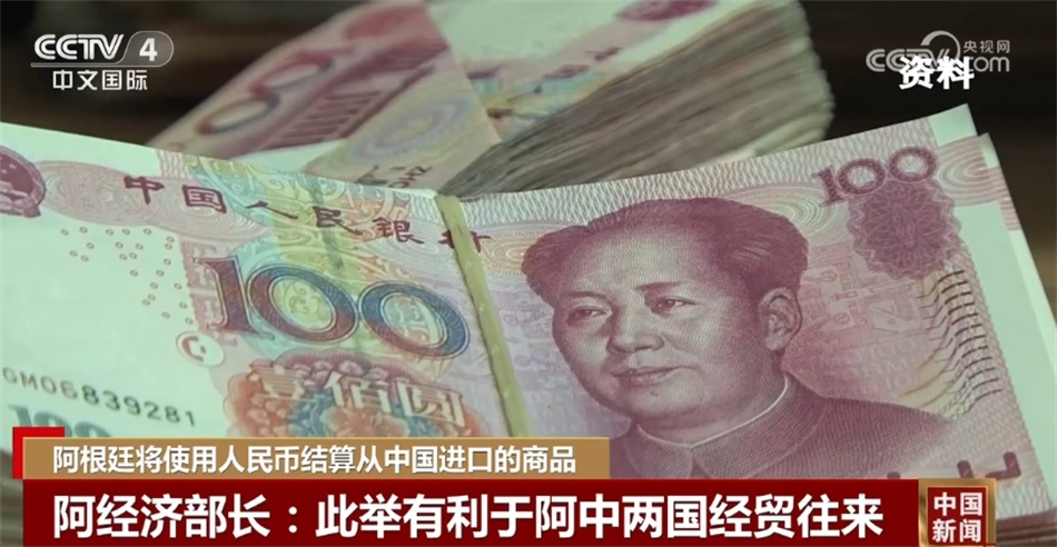 央視網(wǎng)消息:當(dāng)?shù)貢r(shí)間26日,阿根廷經(jīng)濟(jì)部長(zhǎng)馬薩召開新聞發(fā)布會(huì),宣布阿根廷將停止使用美元來支付從中國(guó)進(jìn)口的商品,轉(zhuǎn)而使用人民幣結(jié)算。