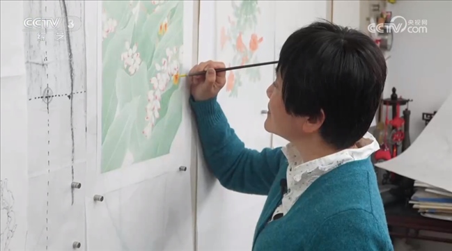 工筆花鳥畫家 上海市文史研究館館員 萬芾:我這個(gè)老師一輩傳給我們,我們再像階梯一樣,一代一代承接傳承下去,就有傳承,而且這種傳承,不是這種脫離了中國傳統(tǒng)繪畫的,我們始終有一根主脈抓得很牢