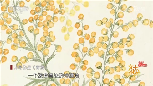 工筆花鳥畫家 上海市文史研究館館員 萬芾:我們看看這幅,這幅應(yīng)該我們很熟悉的一味中藥材就是人參,看了中藥這么美麗的花,這么有生命力的現(xiàn)象,是不是我們吃的時(shí)候也不苦了。
