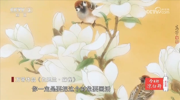 工筆花鳥畫家 上海市文史研究館館員 萬芾:我體驗(yàn)了一個(gè)生命的過程,我也看著鳥的成長,也看著花從一顆種子到發(fā)芽,到花蕾到盛開、凋零,生命的過程每次看我都很有感觸,我說生生不息,每張畫里都是這樣的給你的體會(huì),甚至有時(shí)候我覺得我就像一一朵花,一只鳥一樣,我會(huì)自由地飛翔。