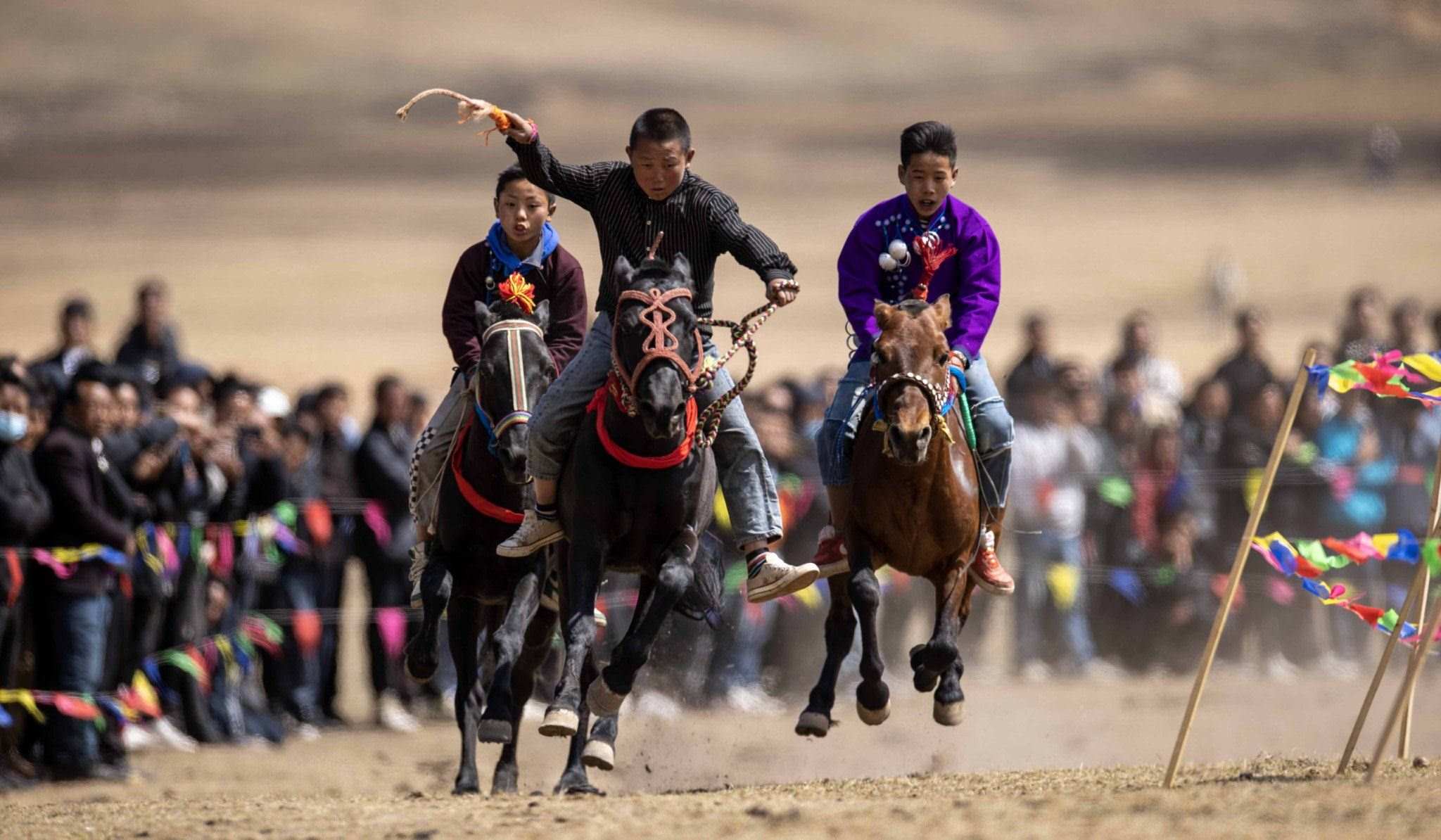 2023年4月25日,四川涼山,普格縣黎安鄉(xiāng)海口梁子,傳統(tǒng)的彝族賽馬比賽拉來帷幕。視覺中國