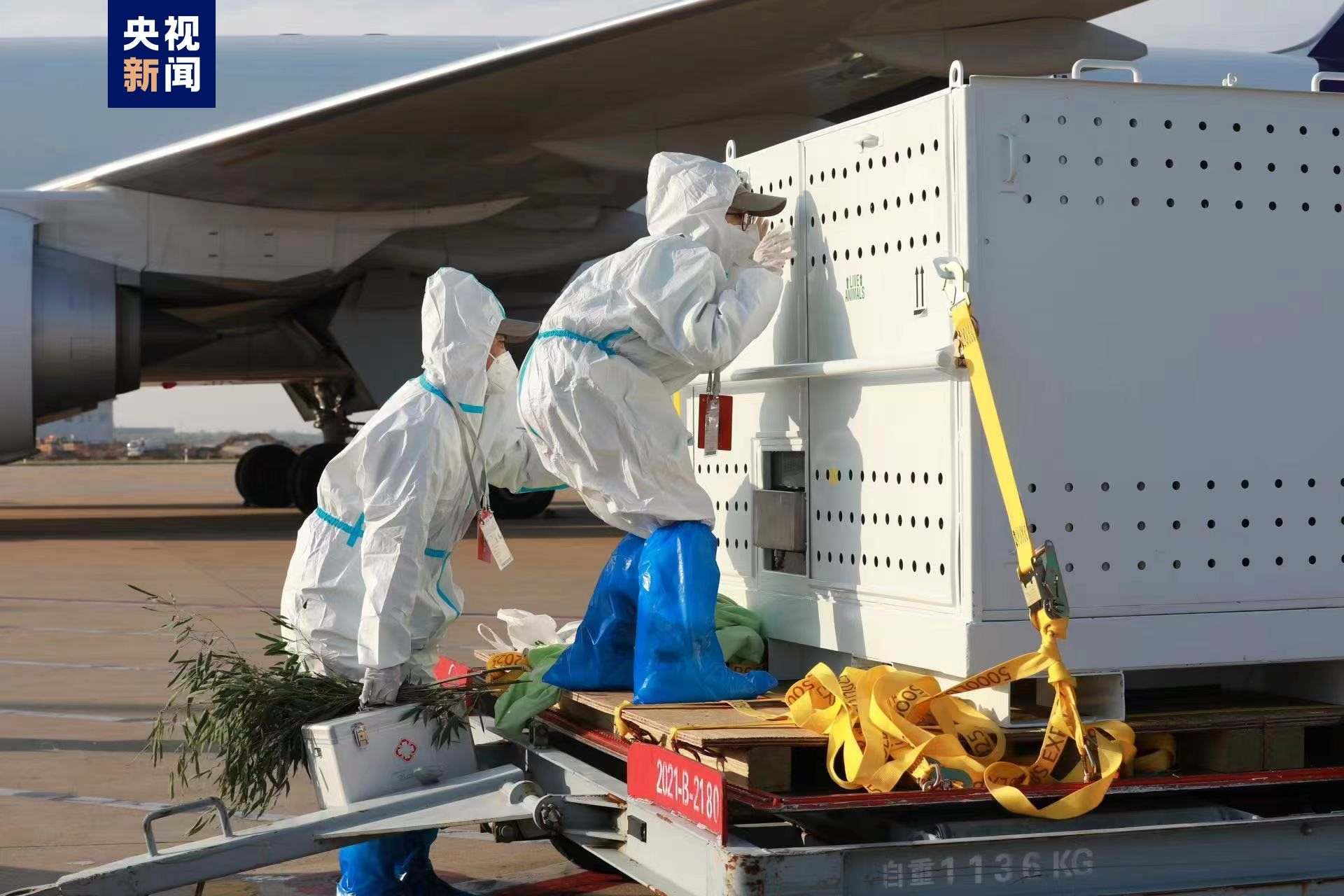 北京時間4月27日16時26分,23歲的旅美歸國大熊貓“丫丫”抵達上海浦東國際機場,在中方獸醫(yī)和工作人員的陪護下,前往封閉隔離檢疫區(qū)。