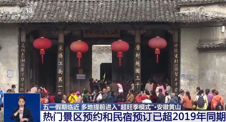 目前西遞、宏村等熱門景區(qū)內(nèi)民宿預訂量已達75%,景區(qū)外民宿預訂約65%,景區(qū)預約人數(shù)和民宿預訂量均已超過2019年同期水平。