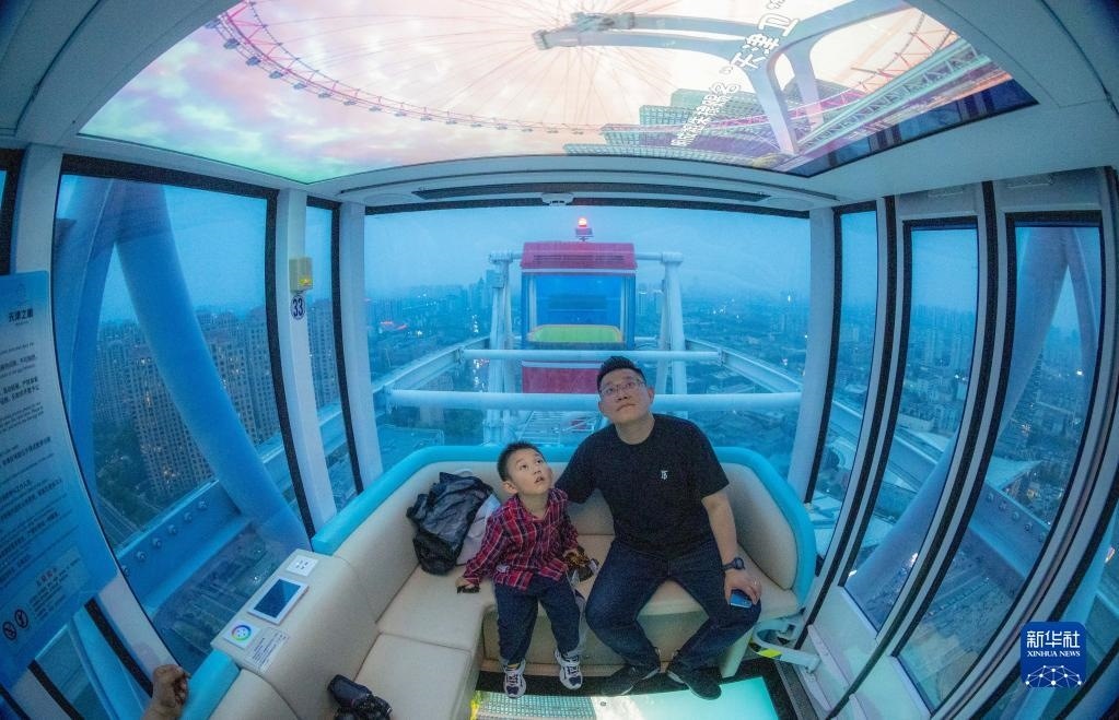 近日,天津市地標(biāo)景觀之一的“天津之眼”摩天輪完成整體更新改造,迎接即將到來的“五一”假期。此次提升改造更換了48個全新轎廂,包含12個內(nèi)設(shè)天屏和地屏的“智能科技”主題轎廂,用來播放天津文旅宣傳視頻,增強游客的觀景體驗感。新華社記者 孫凡越 攝