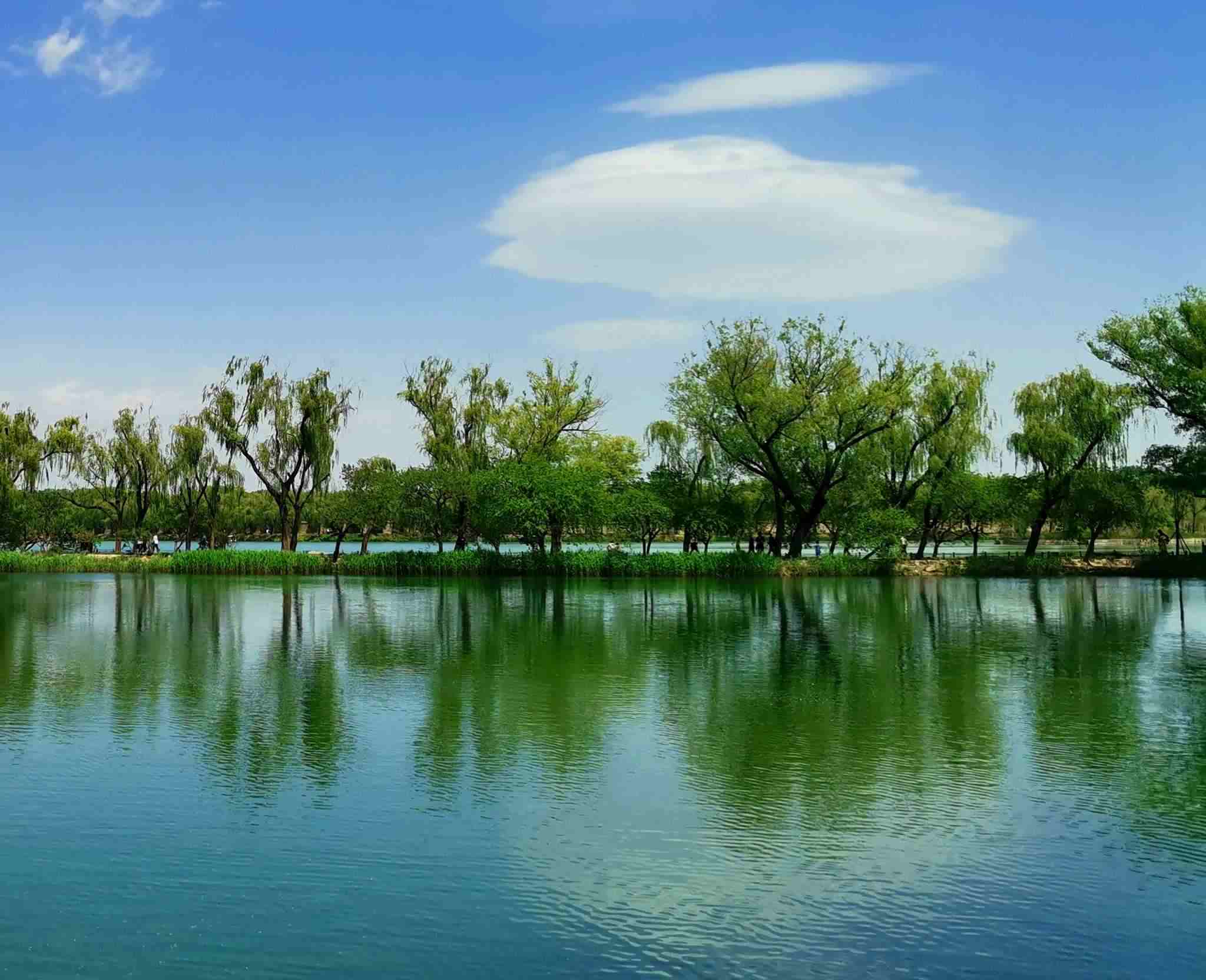 2023年4月29日,北京頤和園藍天白云、山青水秀,美不勝收。視覺中國