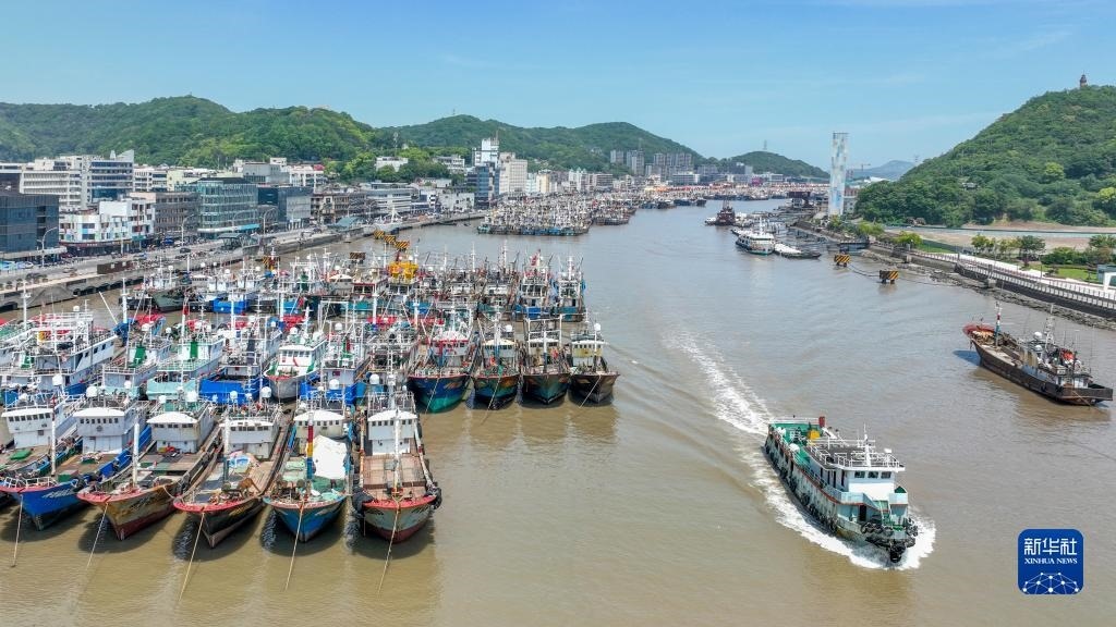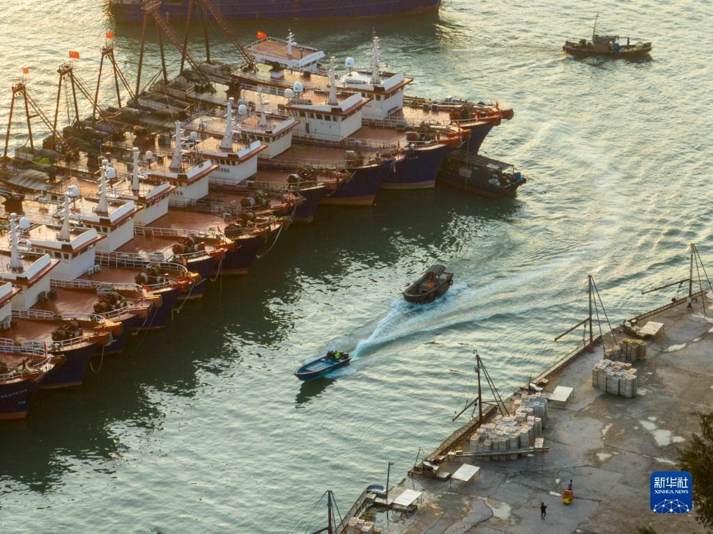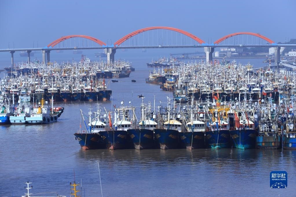 4月30日,在浙江省舟山市普陀區(qū)沈家門(mén)漁港,漁船歸港準(zhǔn)備休漁(無(wú)人機(jī)照片)。