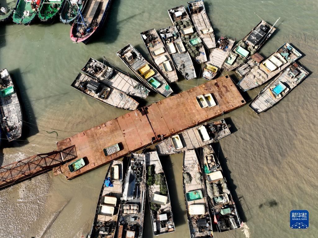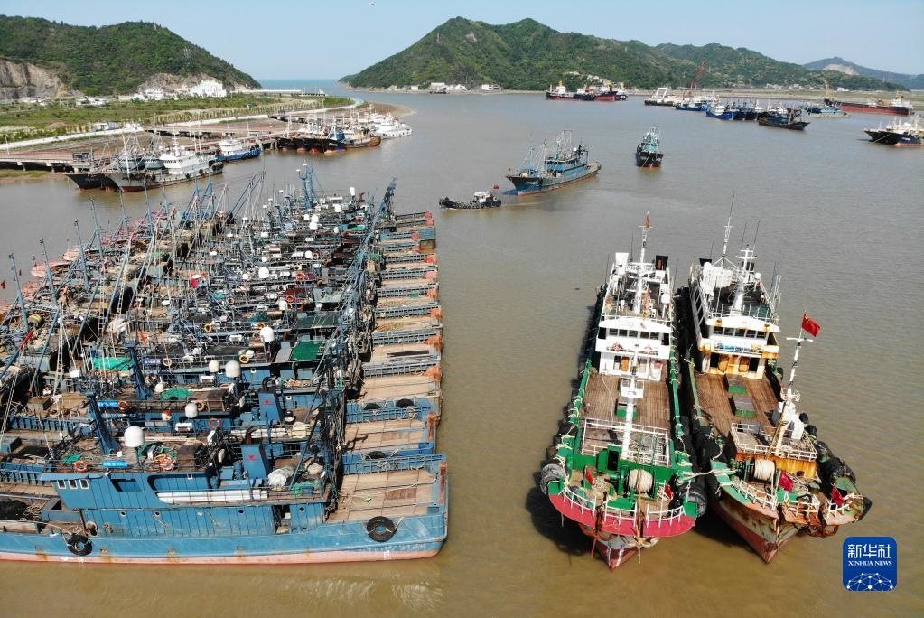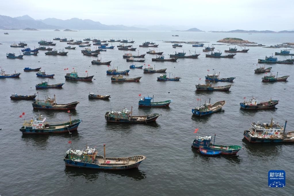 4月30日,準(zhǔn)備休漁的漁船停泊在福建省福州市連江縣苔菉鎮(zhèn)北茭村漁港(無(wú)人機(jī)照片)。