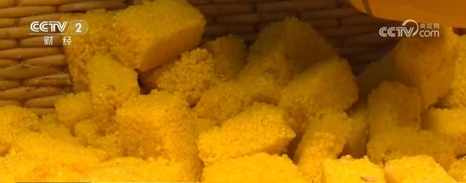 在這條街區(qū),你還可以找到各種陜西特色美食的身影。這種色澤金黃的美食叫陜北小米酥,現(xiàn)場(chǎng)制作,入口酥脆。這個(gè)“五一”假期,很多游客一路逛一路吃,走的時(shí)候還會(huì)給家里人帶上幾盒。