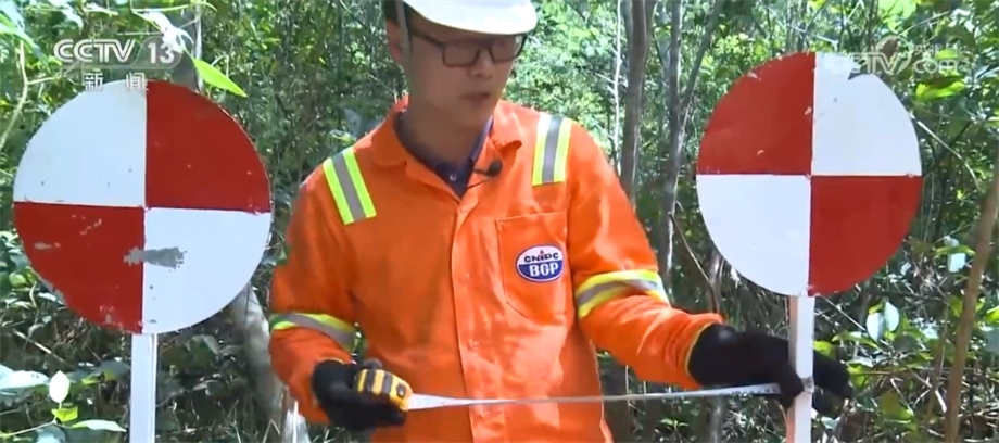 在勘探過程中,工作人員會用不同顏色的飄帶進行標記,這種紅色的飄帶是代表保護樹種,禁止砍伐,藍色飄帶則指示著項目的路線。這些飄帶全都是用可降解材料制成的,在勘探任務(wù)結(jié)束后,還會有專門的小組對工區(qū)進行垃圾回收和雨林恢復工作。目前,項目已經(jīng)完成了70%的工作量,預計7月中旬可以順利竣工。一年多來,項目多次接受當?shù)丨h(huán)保等部門的各項檢查,每一次審計和檢測都收到了相關(guān)方非常高的評價。