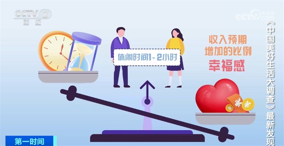 最讓人羨慕的是休閑時間在1—2小時的人群,他們不僅幸福感高,收入預(yù)期增加的比例也最高。