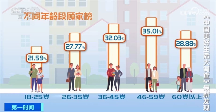 大調(diào)查發(fā)現(xiàn),46—59歲的中年人休閑時間陪伴家人的比例最高,其次是36—45歲人群。這兩個年齡段的人群,大都上有老下有小,家庭責任最大,一家人團團圓圓才是最美好的生活。