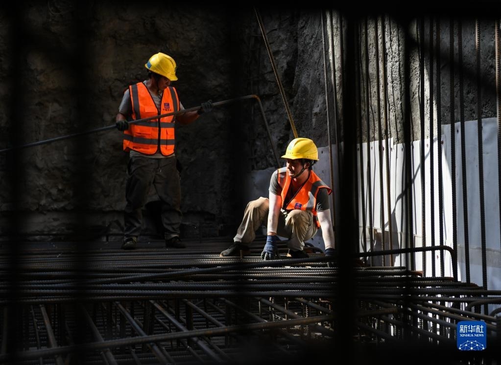 5月1日,在成都地鐵27號(hào)線一期工程項(xiàng)目花照壁北站施工現(xiàn)場(chǎng),中建三局的工人在施工。